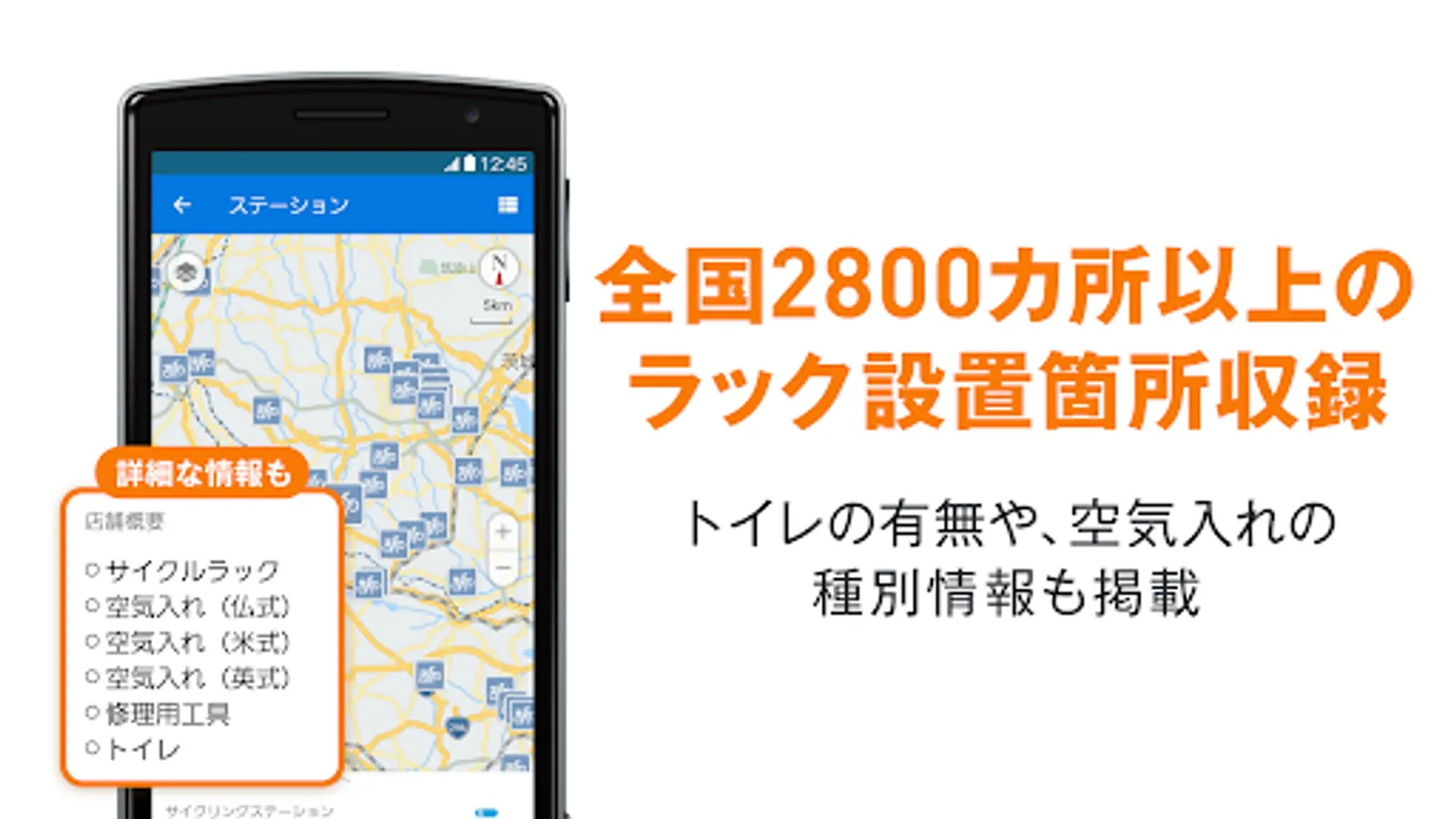 Search for spots (cycling stations) where cycling racks or tire pumps are available.