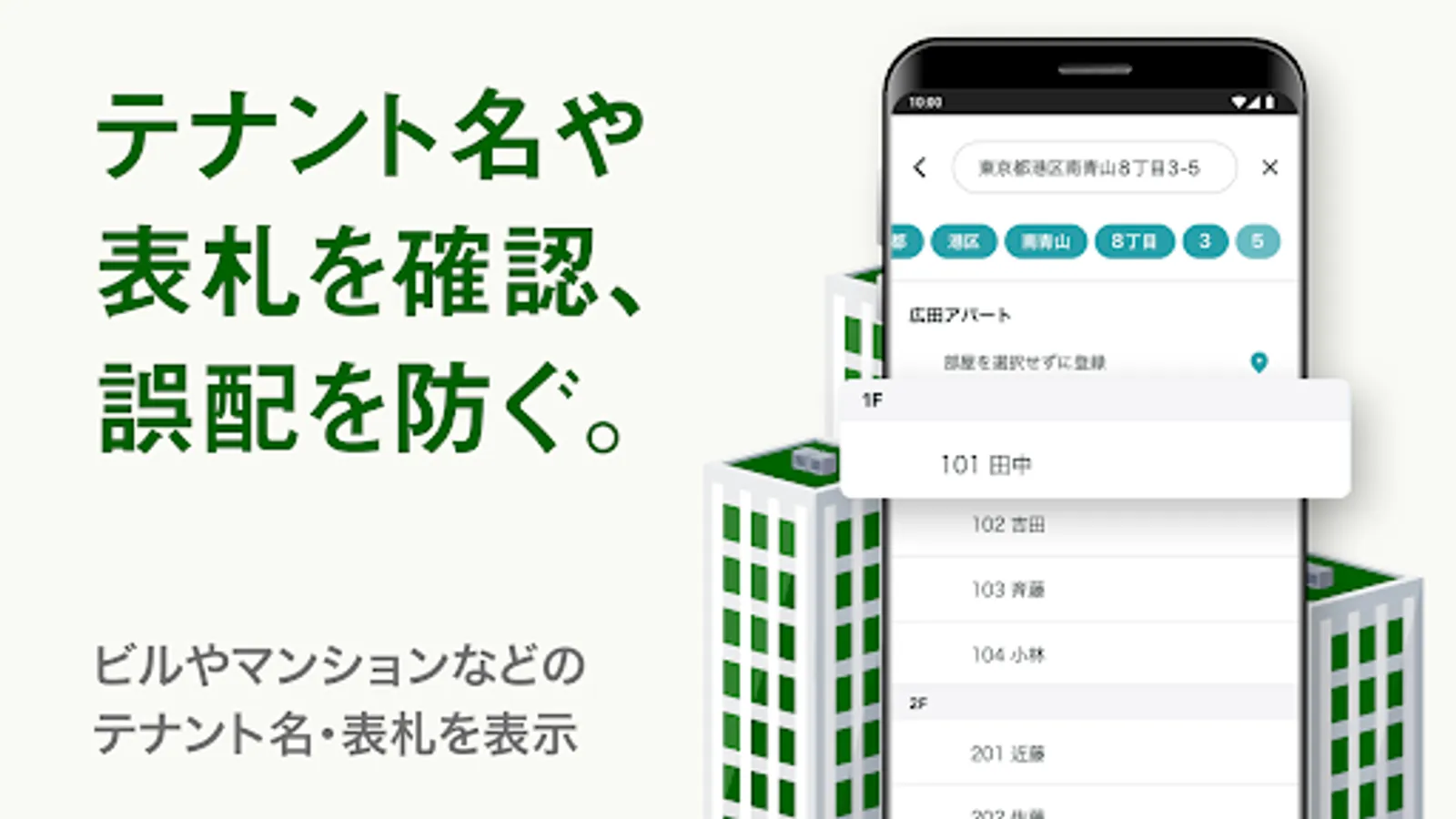 You can search for a delivery destination simply by entering the building name, such as a building or condominium, or the name of a tenant within the building.