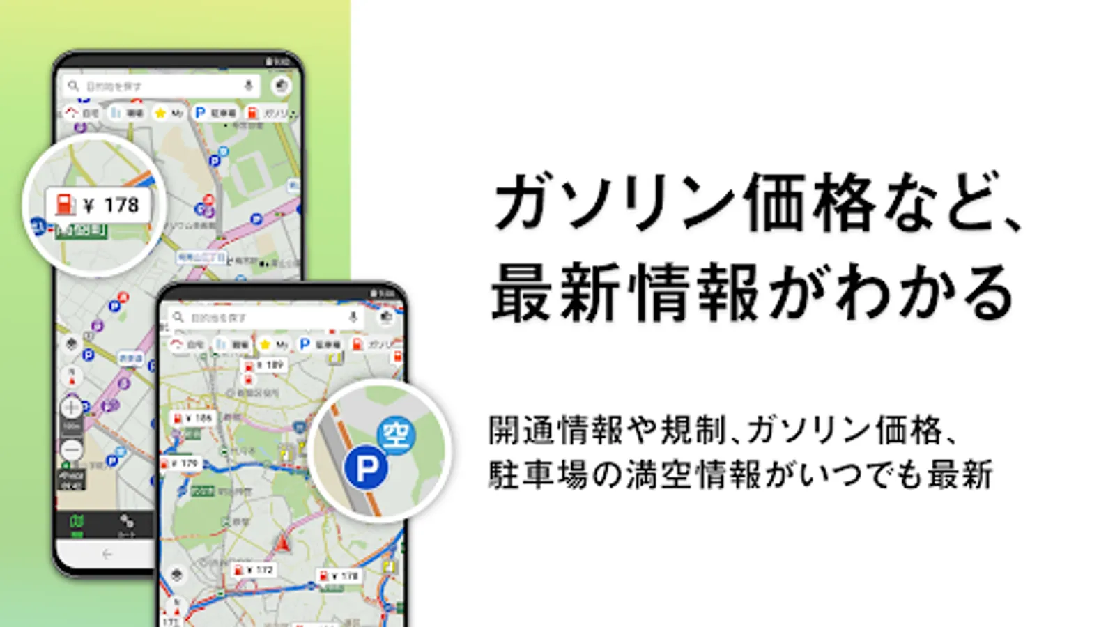 You can display the icon of your favorite genre on the map. Full availability information is displayed for parking lots, and price information is also displayed for gas stations.