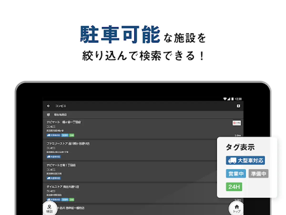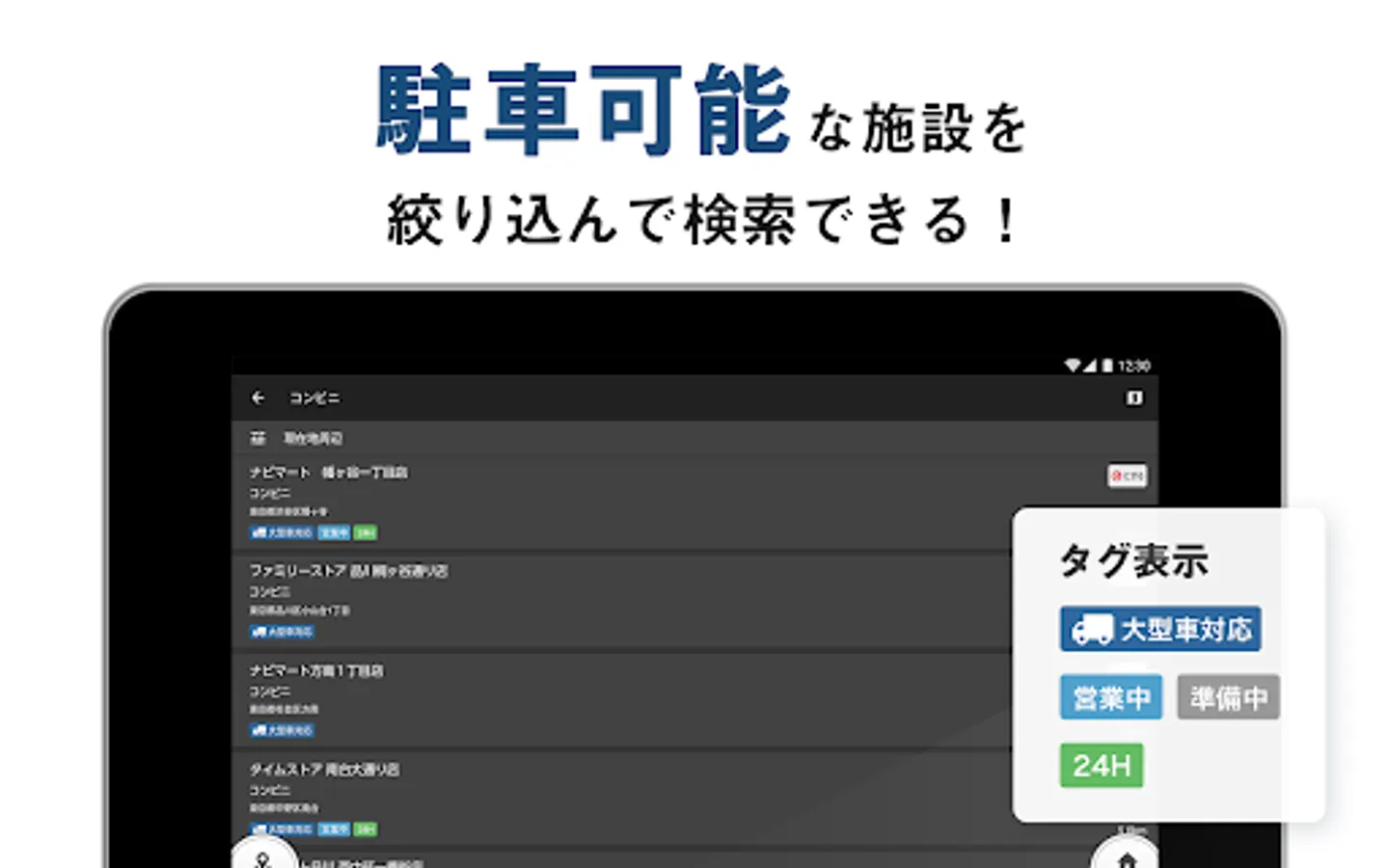 ・Location search for large vehicles