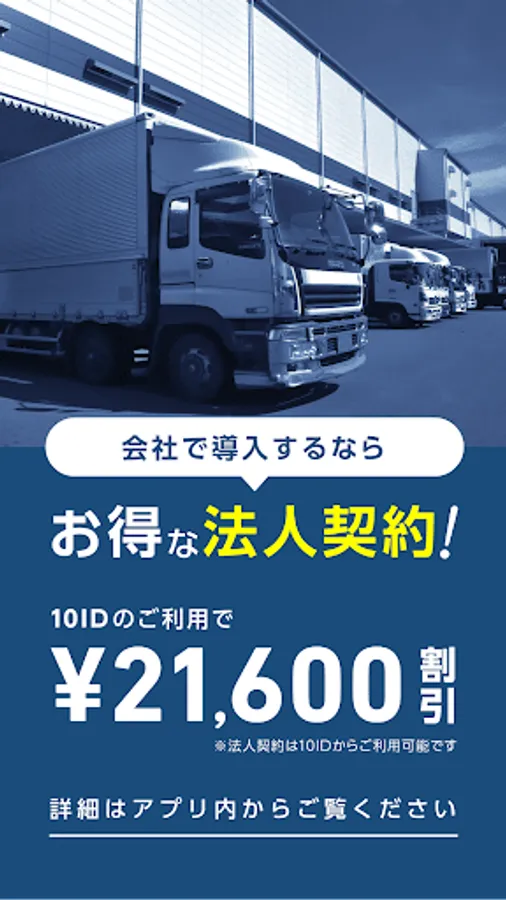 Special Corporate Contracts:Volume discounts apply to bulk contracts of 10 IDs or more. By "system linkage" from the logistics system used by the company to the truck car navigation system, operation instructions can be easily sent to the driver's smartphone. For more information, please visit the corporate contract site.https://inquiry.navitime.co.jp/truckcarnavi/bussiness.html?from=android_store