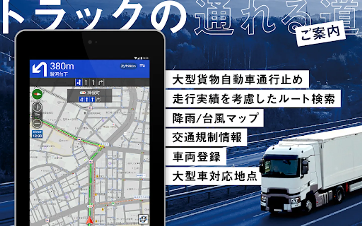 ・Equipped with functions for truck drivers and various data for freight vehicles
