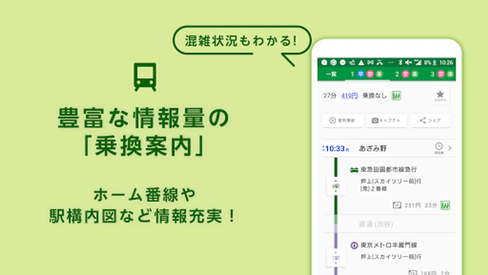 乗換NAVITIME Tokyo Japan is a transfer information app that allows you to easily search for necessary information such as timetables and route information anywhere in Japan, easy to understand route maps, and the locations of boarding areas to transfer smoothly. It supports not only trains, but also provides transfer routes, travel time, and fares for nationwide air travel, city buses, highway buses, ferries, and more.