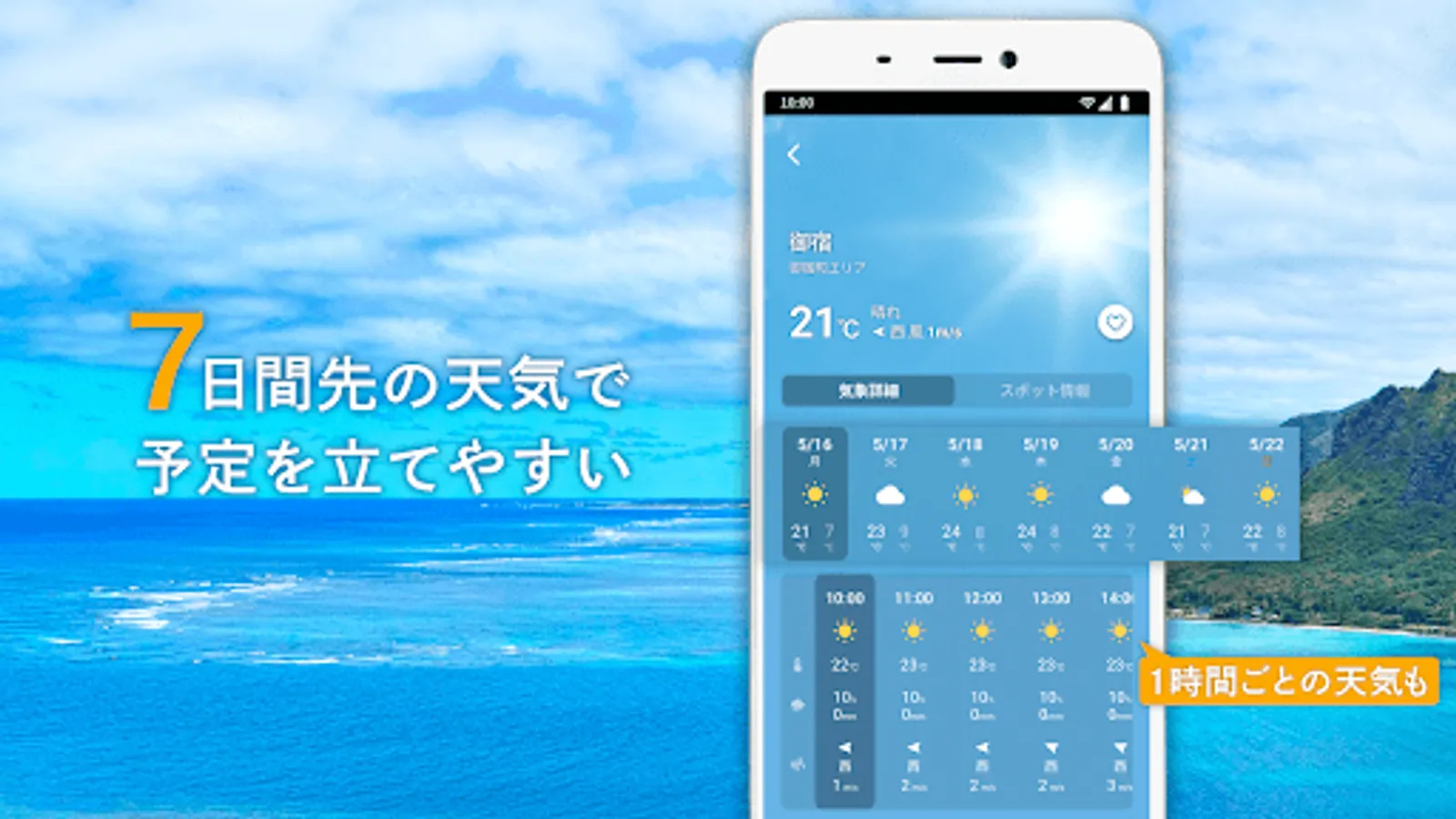 You can see the weather information of 7 activity spots of surfing / camping / fishing / mountaineering / diving / golf / skiing / snowboarding.