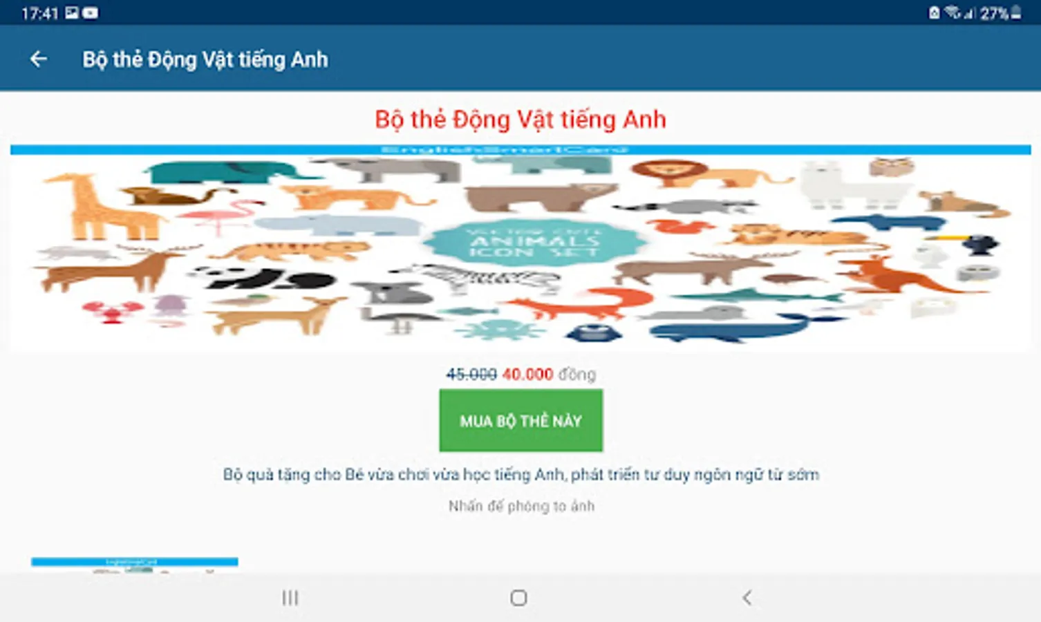 * Currently, we have many sets of cards for children to learn, including sets of English cards for each topic, sets of English cards according to grade 1, 2, 3, 4 and 5 textbooks .