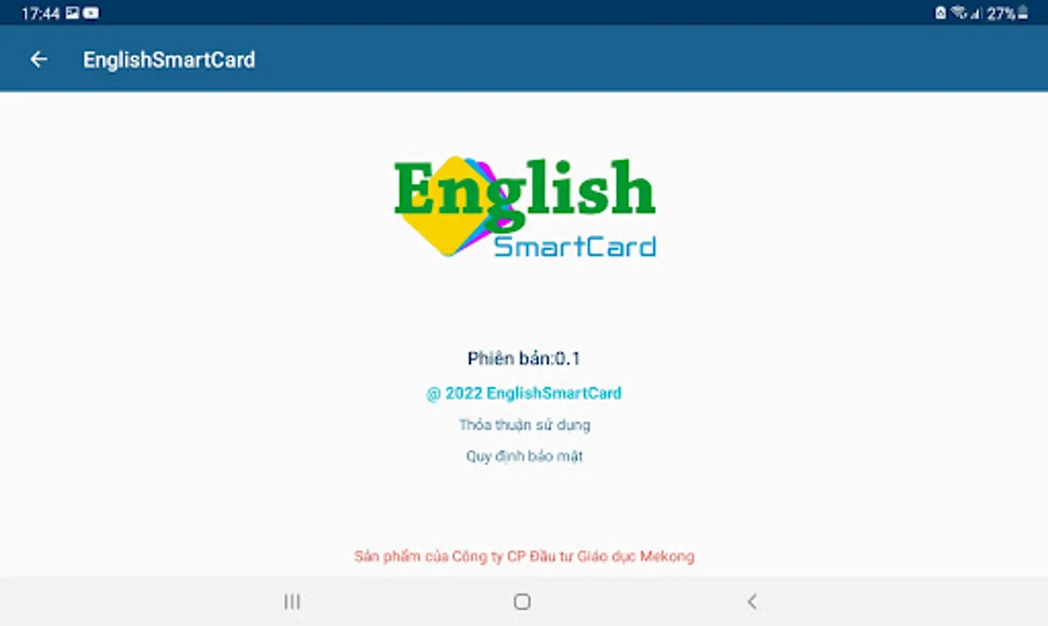 * English SmartCard EnglishSmartCard is a product researched, designed and issued by Mekong Education Investment Joint Stock Company.