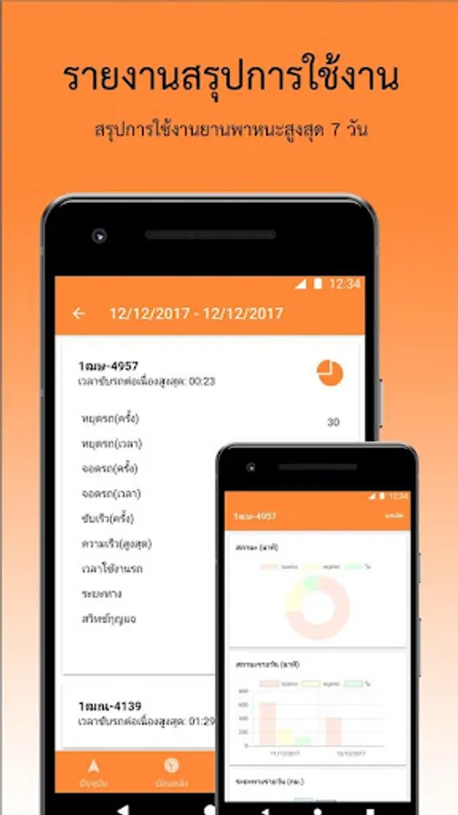 - Usage graphs such as vehicle status, daily status, daily distance, and more.