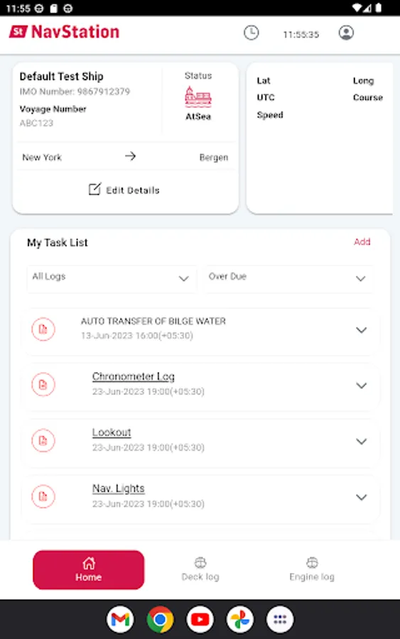 As a subscriber of the NAVTOR Digital Logbooks, NavStation app allows you to view / create entries for Deck and Engine log book from your Android phone or tab.