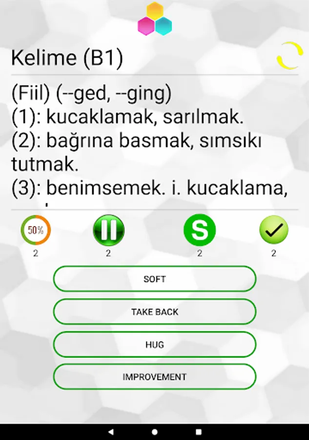 Time to practice what you learn. Word Hunter offers 100 episodes. In this game you race against the computer honeycomb taking English words quickly, you should come before the end of the honeycomb. Your biggest supporter in this process, your wildcard.