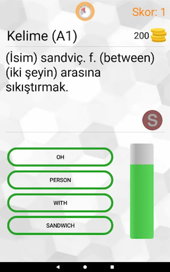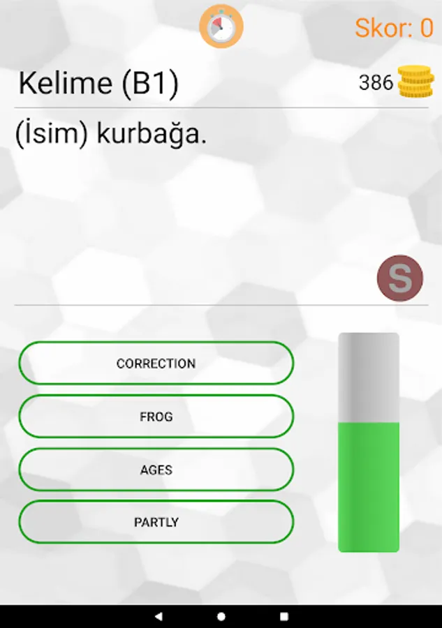 Test your English vocabulary learning pace by playing against time. Earn points as you make scores and compare yourself with other players.
