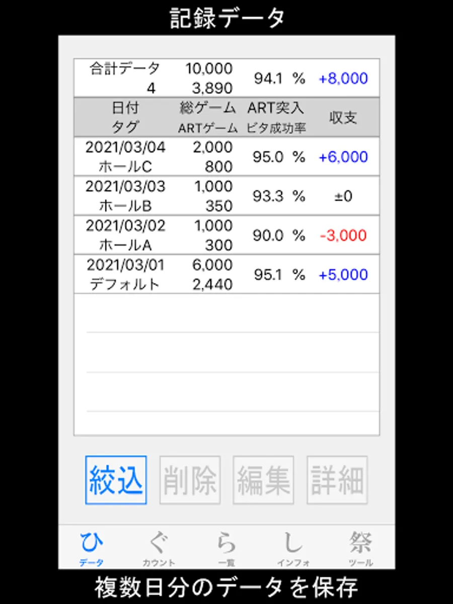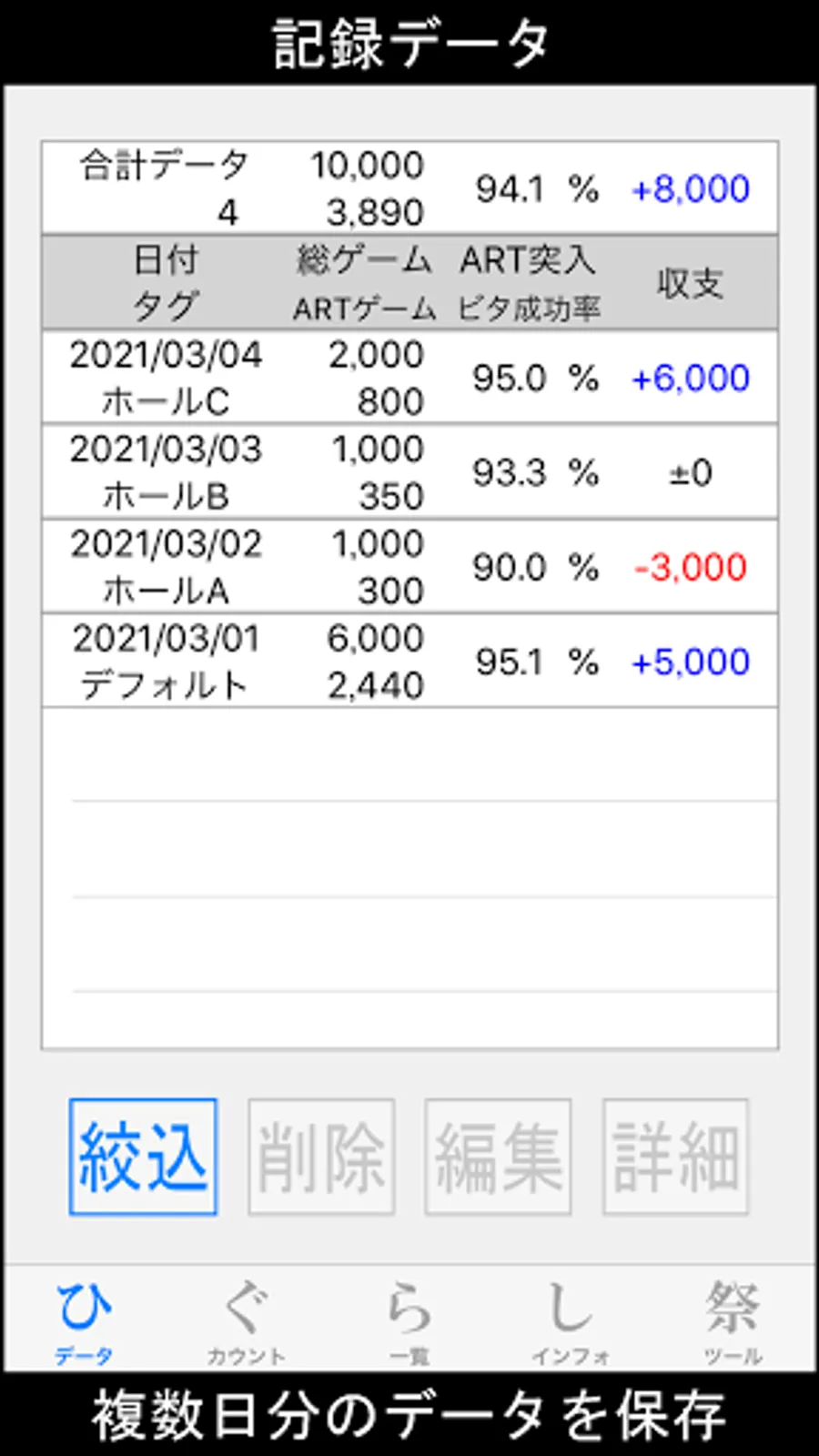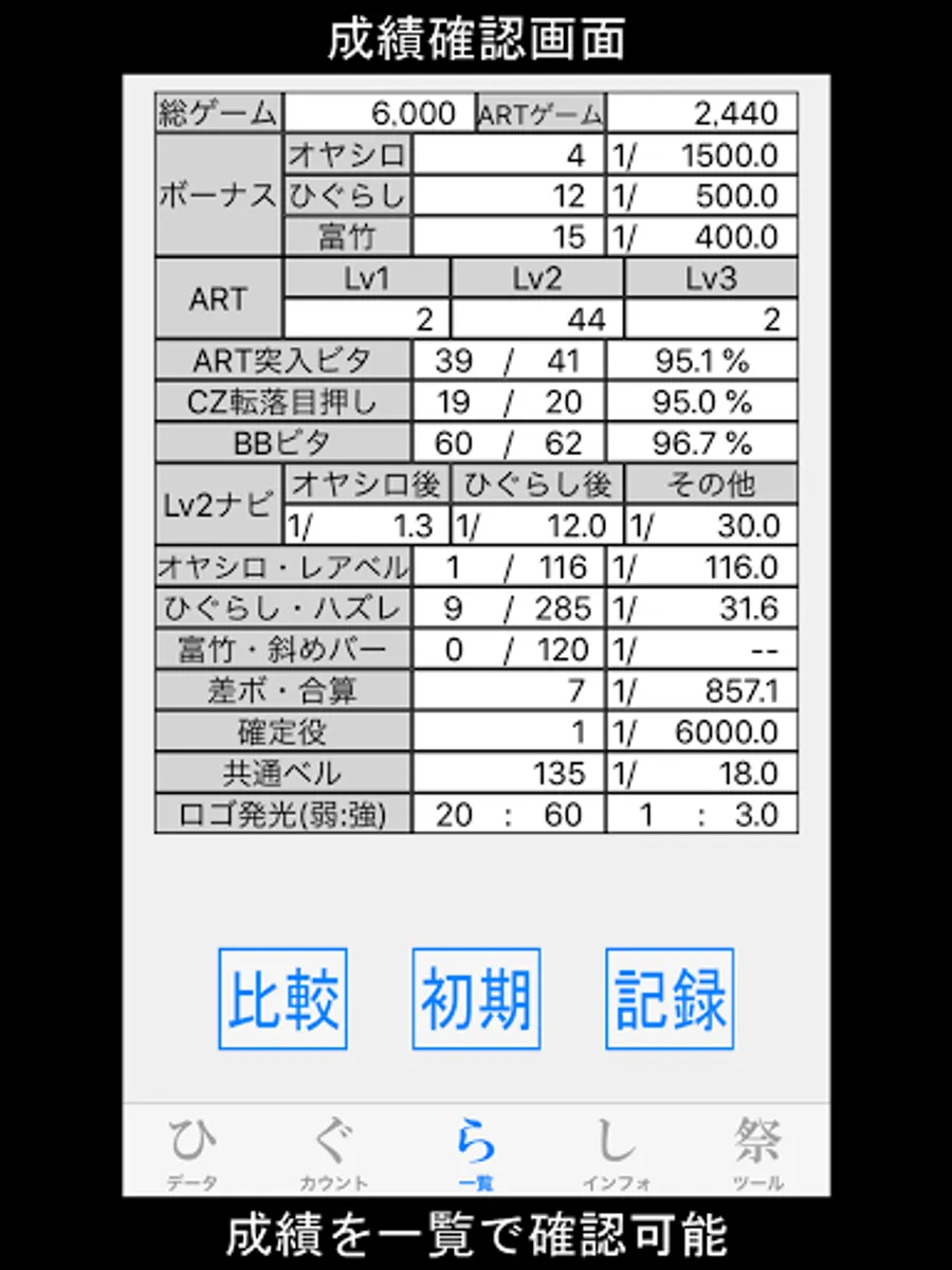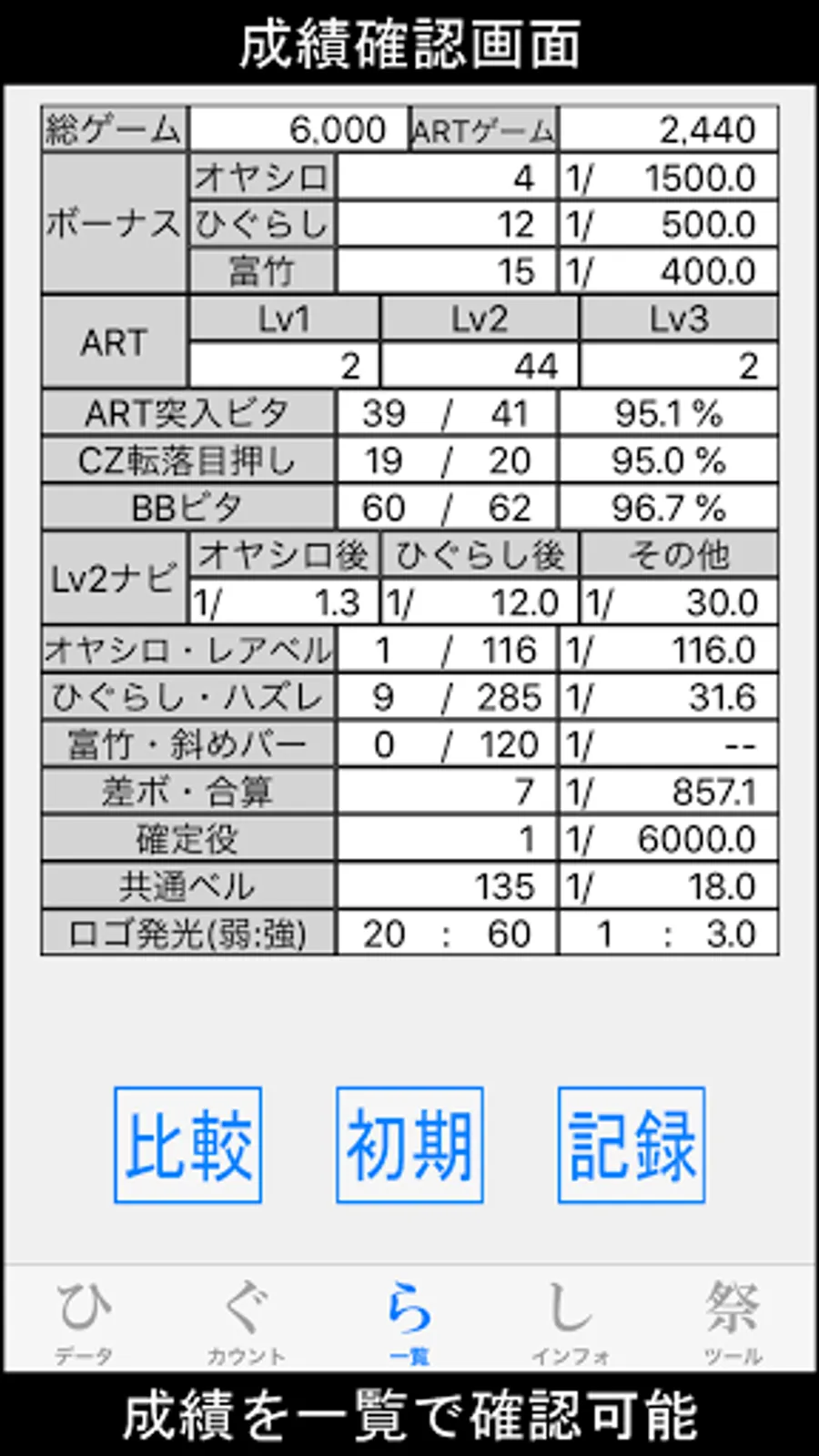You can record the number of games, bonuses, small roles, success rate of bitter pressing, etc. over a long period of time, and check your own results based on the accumulated data.