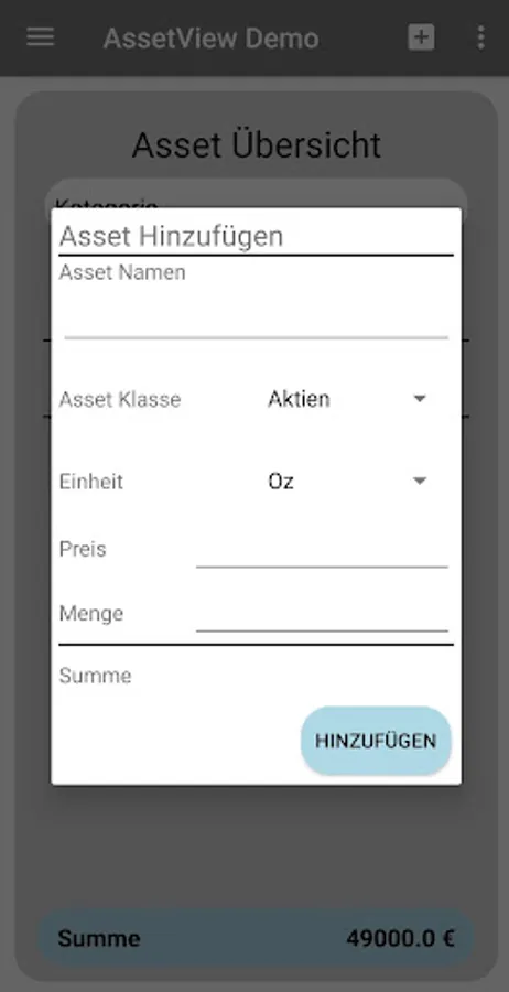 The app offers the possibility to manage one's own assets according to different categories and to edit them at any time with just a few simple steps. This way you always know how much assets you have, because your smartphone is almost always with you. The relative shares are also displayed so that you can see if there is an overweight in your portfolio.