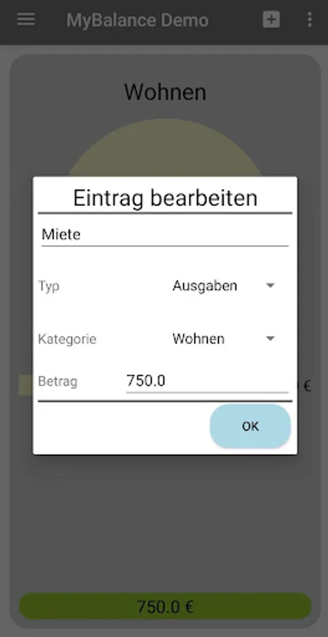 The app allows you to create regular income and expenses using different categories. The data entered is displayed in the form of pie charts as well as the percentage share.