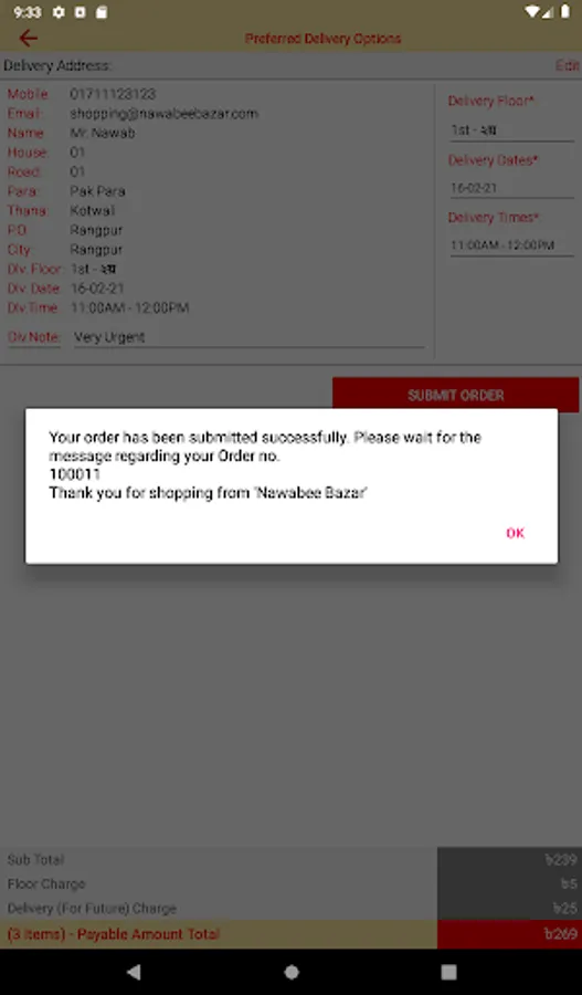 A user can purchase daily-life's 'Grocery and Katcha-Bazar' items. And switching to Food-mode, s/he can order delicious foods from some of the famous restaurants in the Town. After registration, a user could submit an order following of his/her previously selected products list.