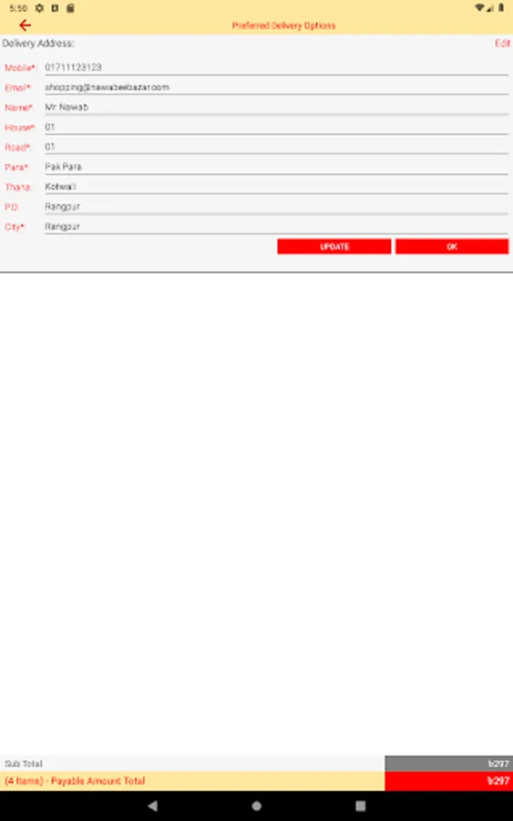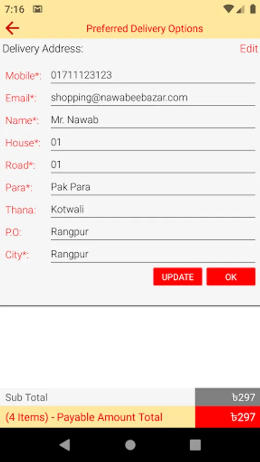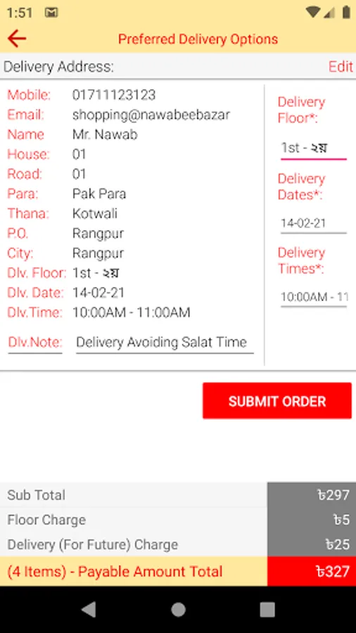 The App is simple, very easy to use and submit an order, seating in home - like a `Nawab`.