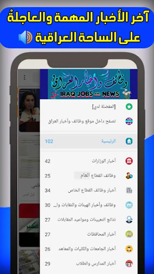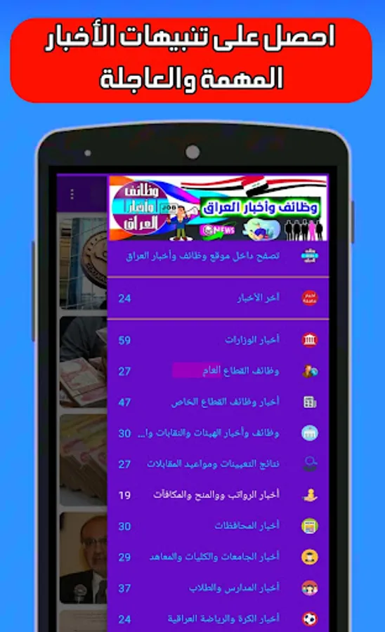 The Iraq Jobs and News application is one of the applications that provides information on jobs and appointments in Iraq, as well as the most important and prominent important and urgent news on the Iraqi arena.