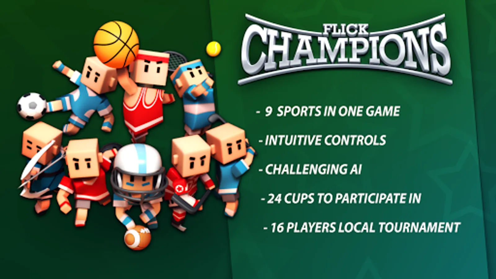• 9 different sports to play, Soccer, Basketball, Hockey, Baseball, Tennis, Bowling, Archery, American Football and Golf.