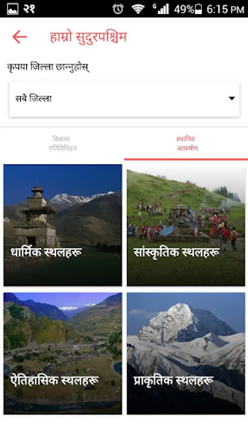 Hamro Sudurpaschim is a mobile application that provides information regarding the social, economic, geographic, political and developmental situation of Far West Region of Nepal. This application has been developed by Far West Development Commission with technical support from Naxa. The main objective of the application is to disseminate information through the use of digital technology to a wider user audience.