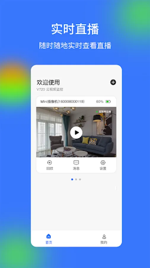 With "V720" you can easily view real-time and historical videos of your apartment, villa, shop, office and other places. Through the "V720" alarm service, you can receive abnormal alarms from the device in real time through APP push and WeChat official account push, and conduct real-time surveys.
