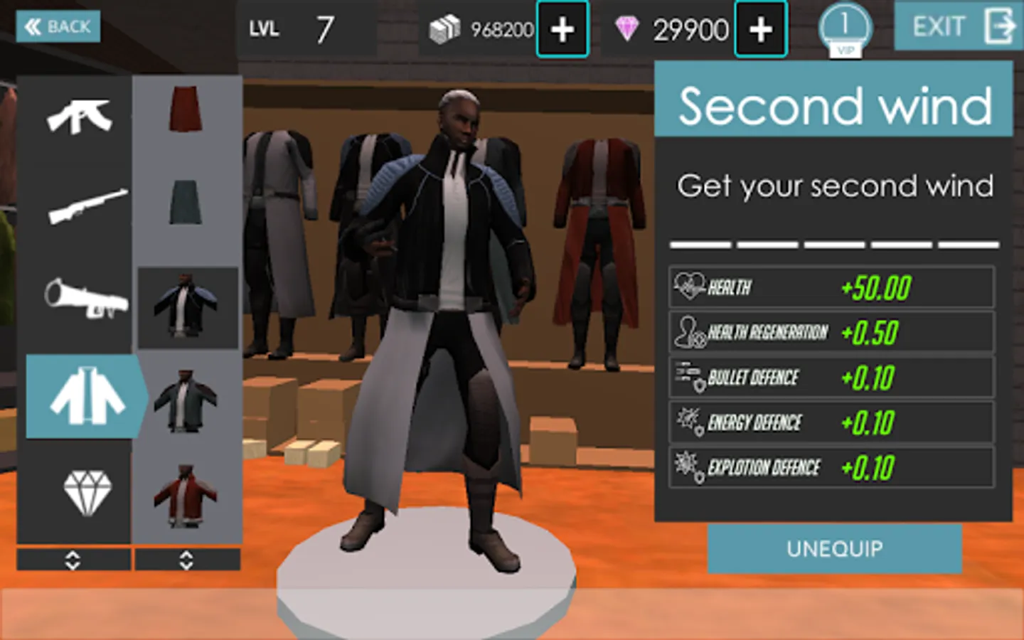 * Spend money in the store! There are different guns, cars and clothes available for purchase
