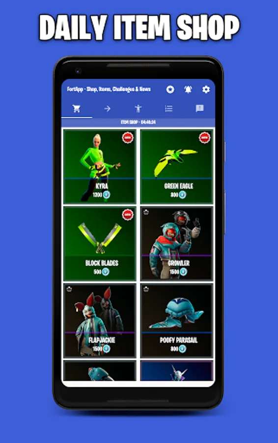 #1 App - Check the Item Shop every day, watch the Upcoming/leaked items, track the progress of your challenges, search All items and Game News without getting into the game.