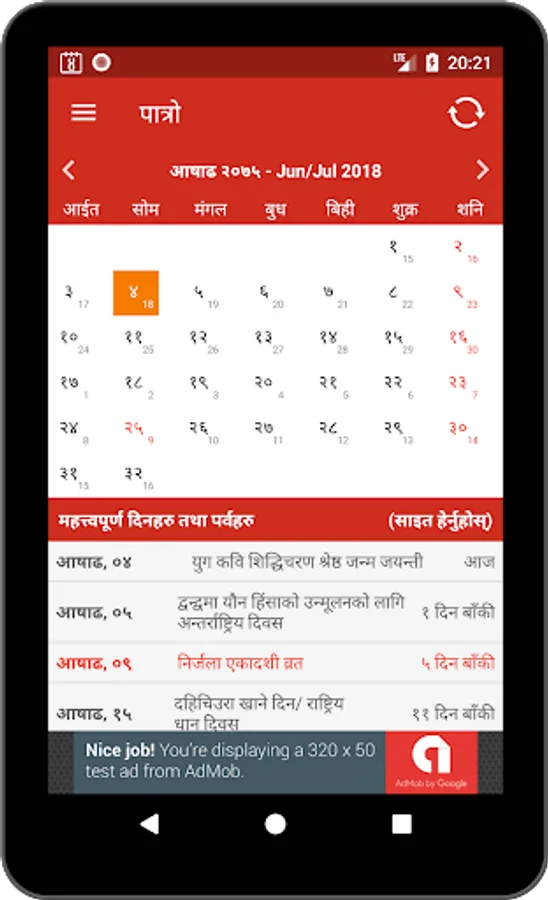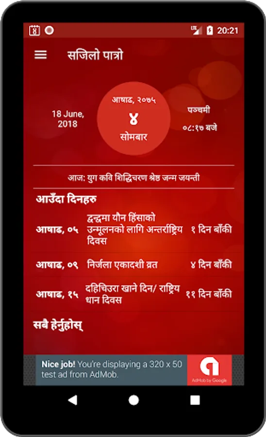 We have developed this application to provide information about Nepali important dates, events and festivals to all the Nepalese living inside and outside the Country Nepal.