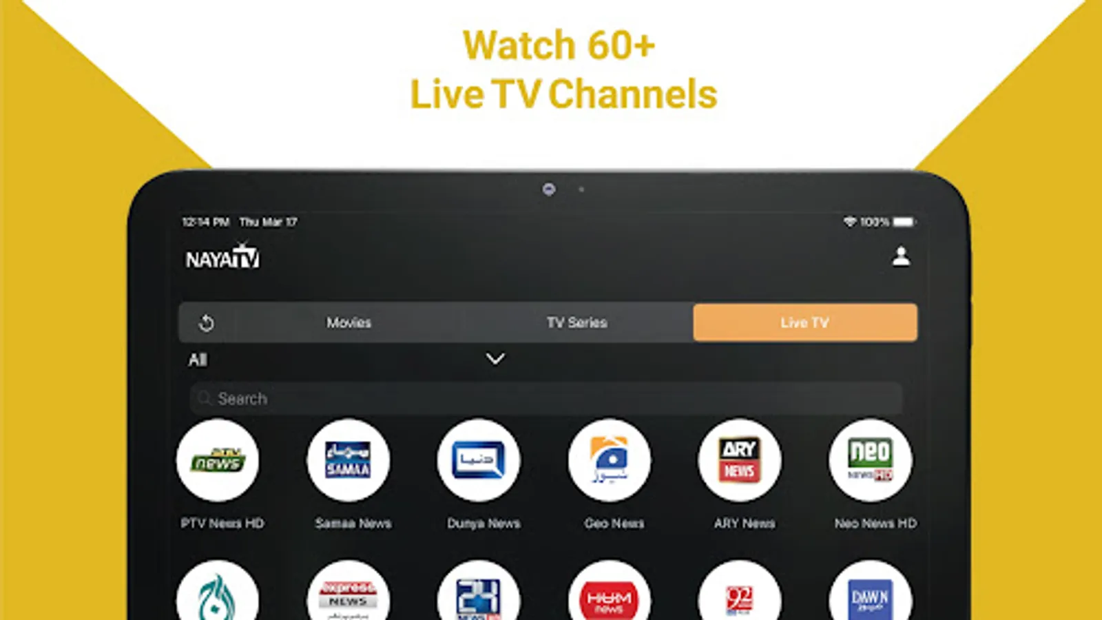 Naya TV is an on-demand streaming service that allows easy browsing of live TV Channels over any internet connection (Wi-Fi and 3G/4G). Enjoy all the latest dramas, talk shows, news channels, kids show, sports, movie channels and much more! Now you can watch the latest in entertainment anywhere, anytime, simultaneously on your mobile phone (Android & iOS), Web, and Android TV.