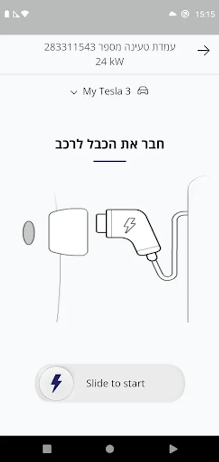 לבצע תהליך של טעינת הרכב הכולל הזדהות, טעינה ותשלום.