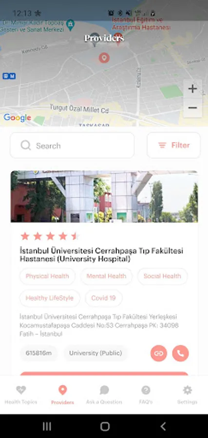 health-related institutions, hotlines, and other mHealth apps. Users can give feedback about the