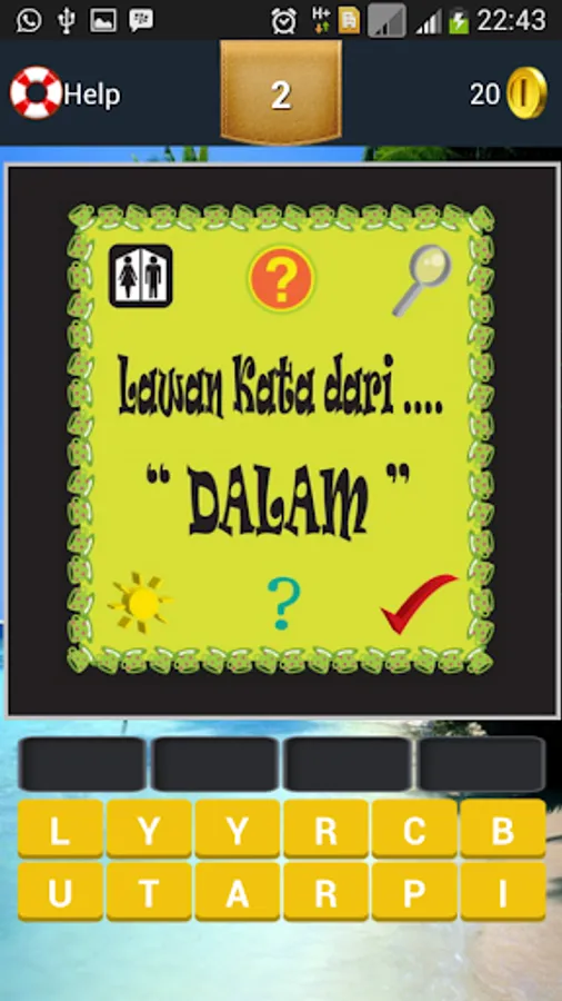 Features available in the game Guess opposite words: