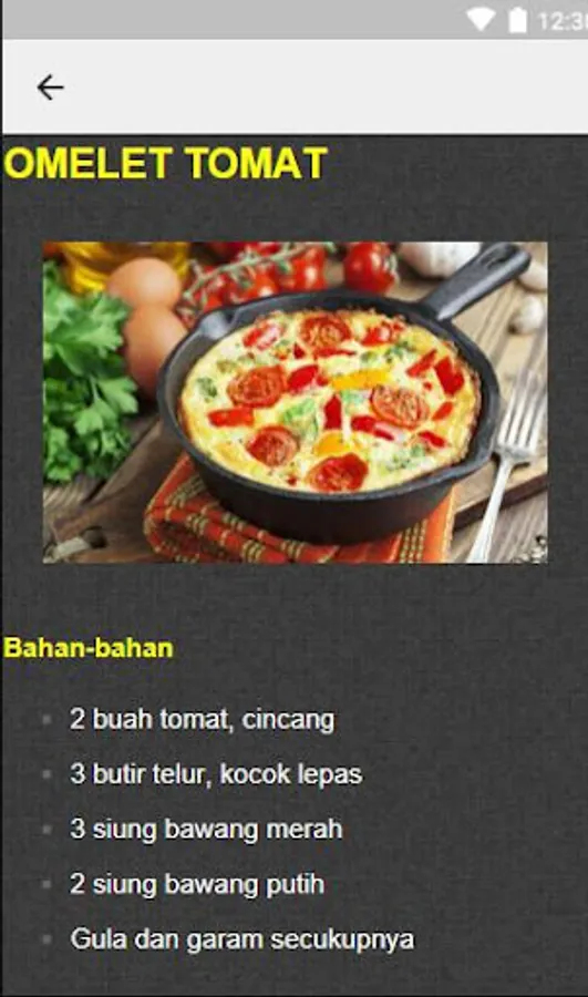 - Royco Nasi Goreng - Tomato Omelet - Eggs Pancake - Banana Bread - Bread - Chicken Porridge Cirebon - Porridge Spinach - Cheese Chocolate Banana Bread - etc.