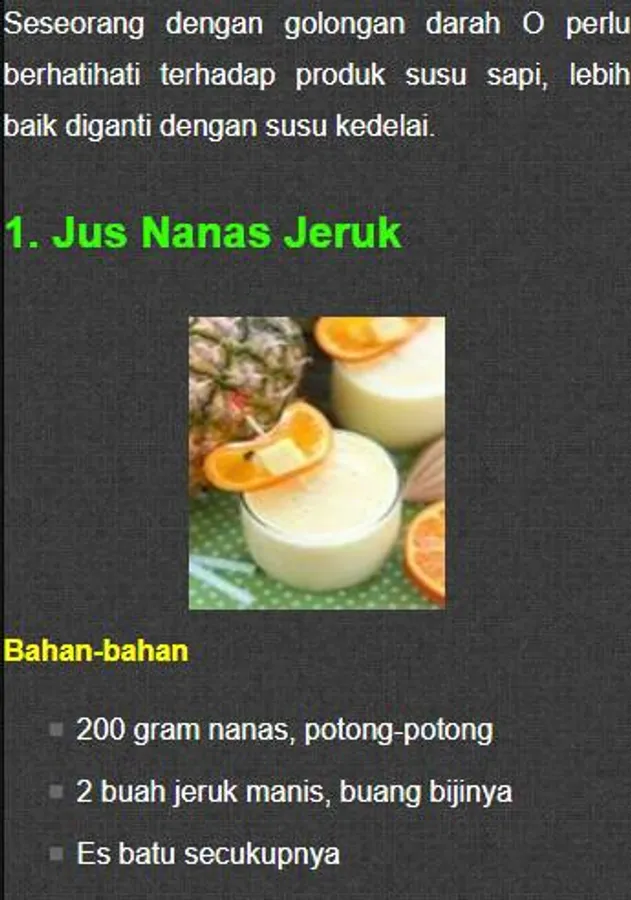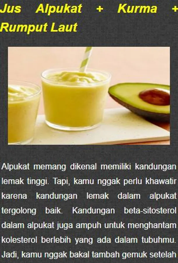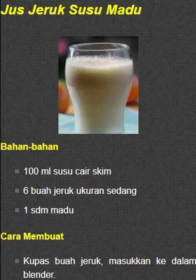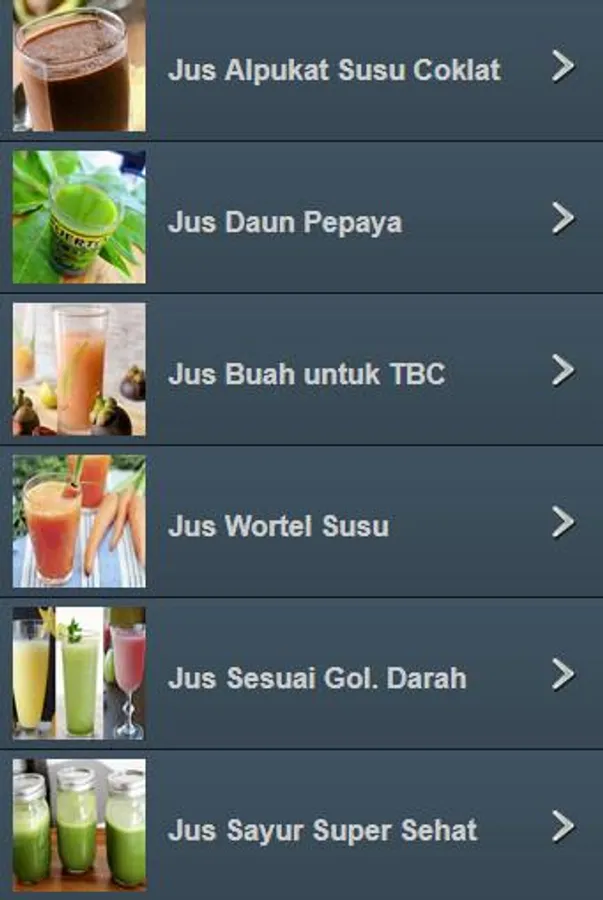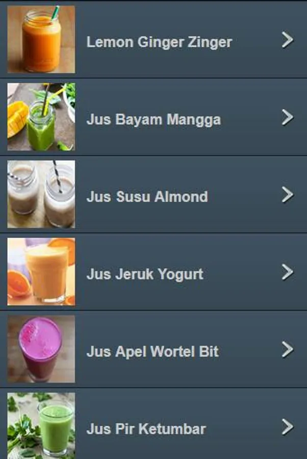 - Spinach Mango Juice - Juice Milk Almond - Orange juice Yogurt - Coriander Pear Juice - Juice Banana Leaf Lettuce - Avocado Juice Dates - Papaya Leaf Juice - Fruit Juices for tuberculosis - Jus In accordance Blood - etc.