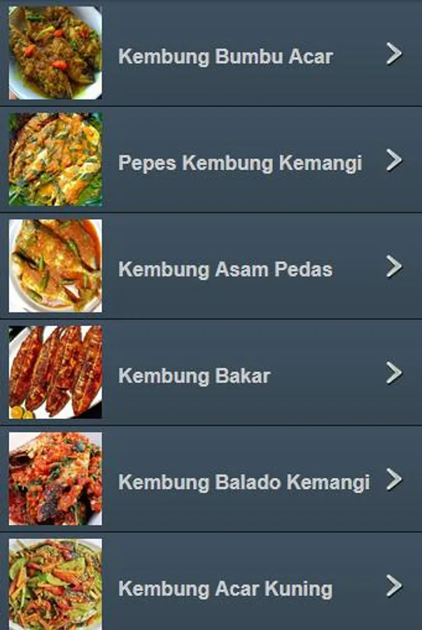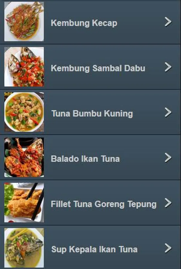 - Spicy Tamarind Bloat - Grilled Bloat - Tuna Fish Balado - Tuna Stuffed Onigiri - Steamed Pomfret - Black Pepper Pomfret - Gabus Fish Pindang - Gabus Pucung - etc.
