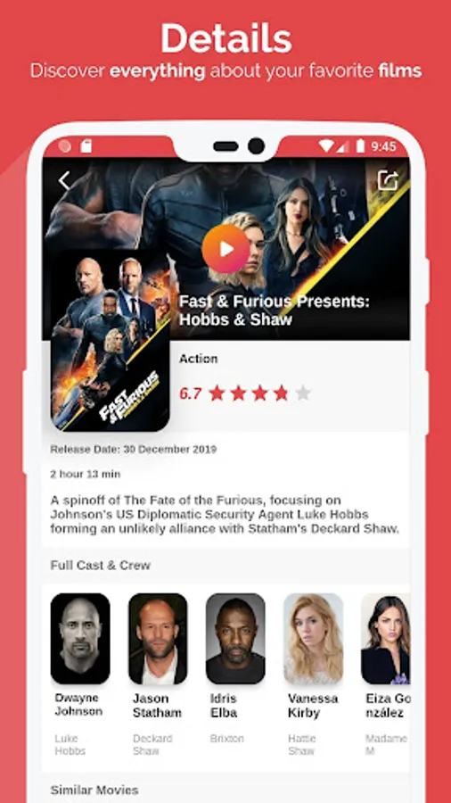 • On the pages of the movies, you can learn the subject of the film, actors, IMDb score, watch the trailer, you can see similar movies.