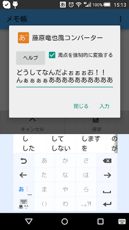 Insert the dakuten to string all that you entered, it is mushroom application to be converted to a certain Mr. Fujiwara wind.