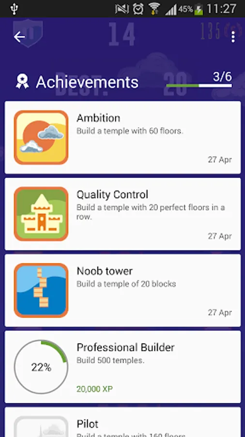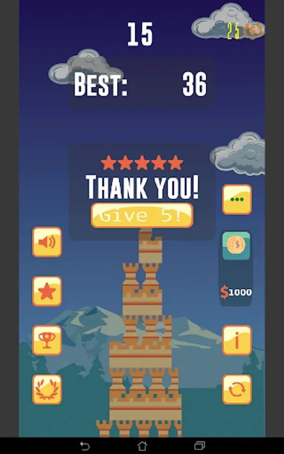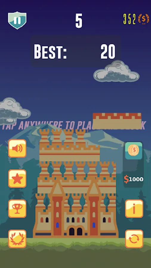 Build a medieval tower. Your goal is to build the highest tower possible, and to do this you have to drop the new piece onto the previous piece as accurately as possible. The game ends when you drop a piece of blackrock and it doesn’t fall on your previous piece. Drop the piece as accurately as possible. Any of the overhang will break off, and then your next piece will be the same size as your last piece. The smaller your pieces get, the faster they move before you drop them, making it tougher to be accurate. Your builder's craft protects the city and your game achievements are visible and bring eternal glory!