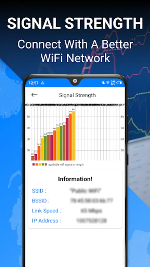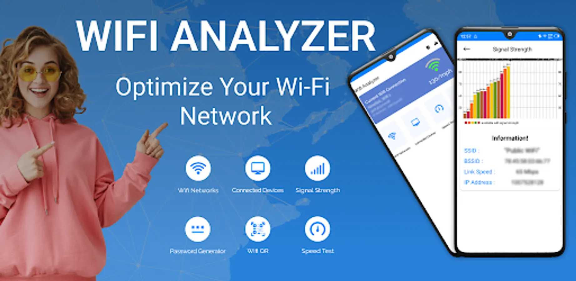 WiFi Analyzer displays the WiFi channels near you. Supports you to find a less crowded channel for your WiFi. It can tell you WiFi signal strength and see which wifi signal is improved. Wifi optimizer shows you the best network from the list with high signal strength. Wifi optimization is the best solution for finding the perfect wifi network for you.