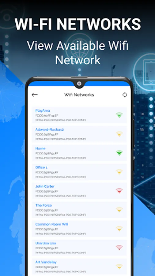 Scan Wifi network and select the strongest signal wifi connection with wifi signal analyzer and enjoy the wifi at high speed. The stronger your wifi the higher the internet speed you get. Wifi optimizer helps you to optimize your wifi network and suggests you the strongest wifi password with a Wifi password generator. Wifi scan or analyze to identify easily & quickly and see how many devices are connected to your wifi router.