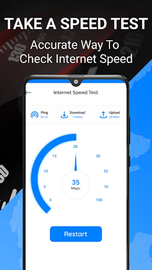 Many users want to test their wifi speed to ensure their network works perfectly well. In that case, the Speed test module helps those users to test speed of their wifi networks. The wifi speed checker & wifi speed meter show your download speed, and upload speed and also show the Ping.