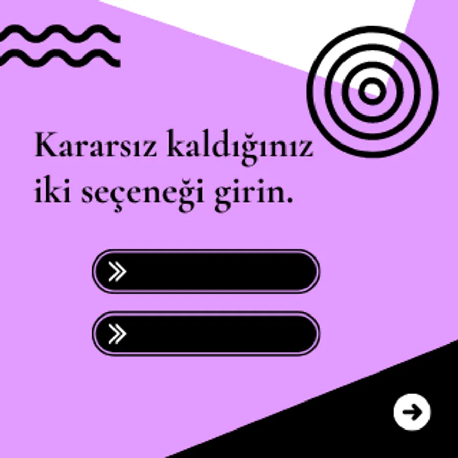 Then the two options you are in a dilemma at the decision-making point are written. These options are the two products you want to buy, the two places you want to go, the two meals you want to cook; In short, you can write here any two situations that you can think of and have difficulty choosing or making a decision.