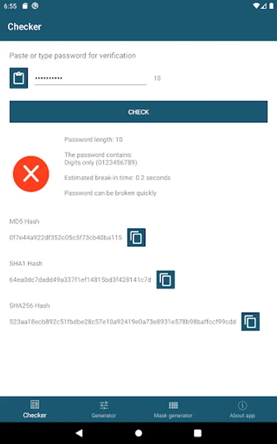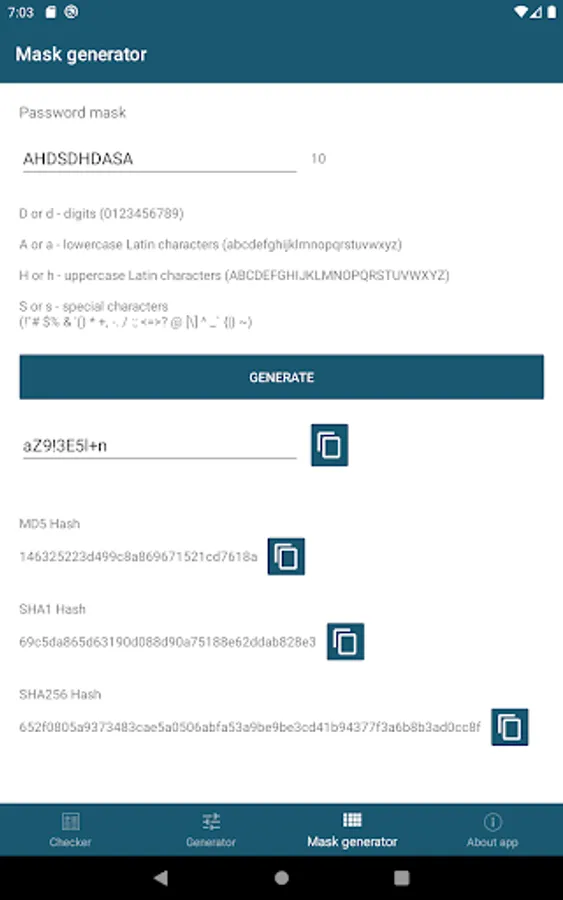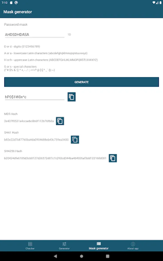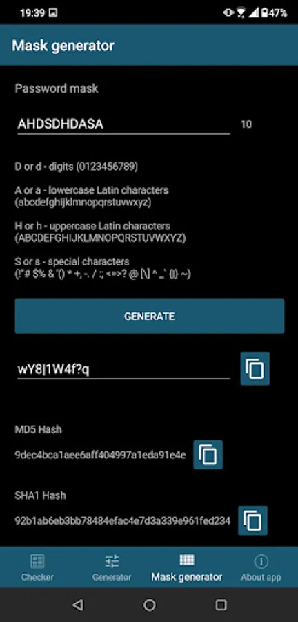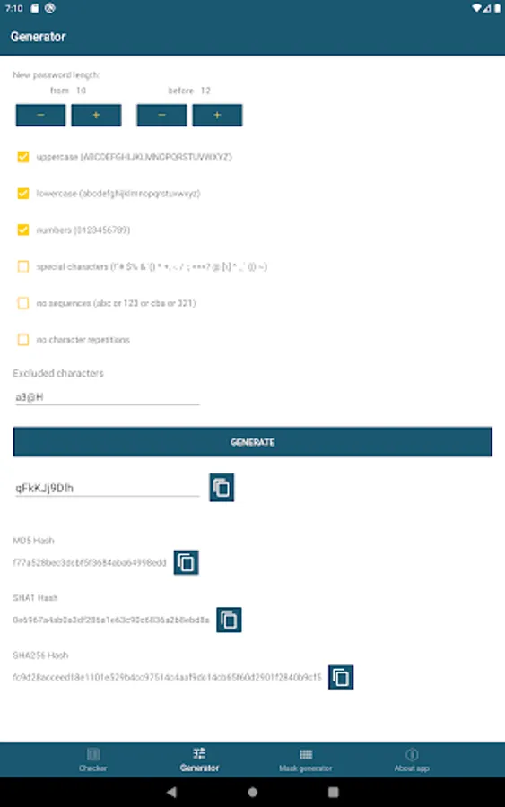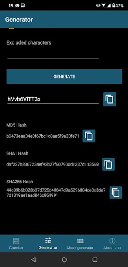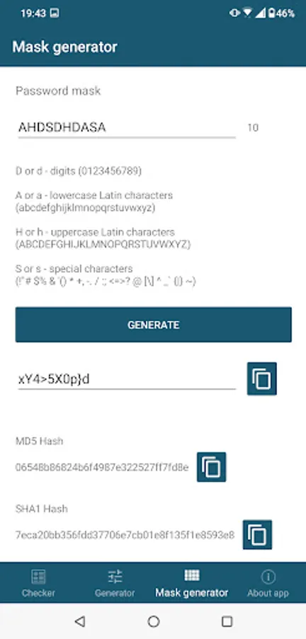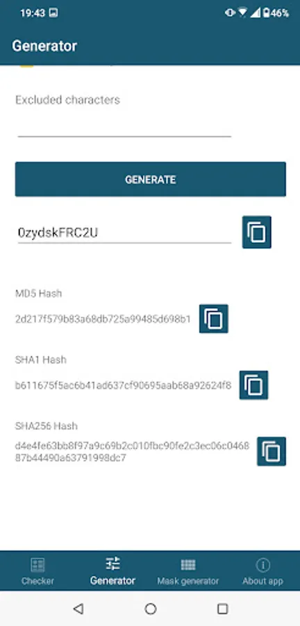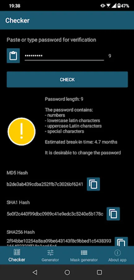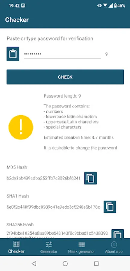 Calculating hashes (MD5, SHA1, SHA256) for the new password.
