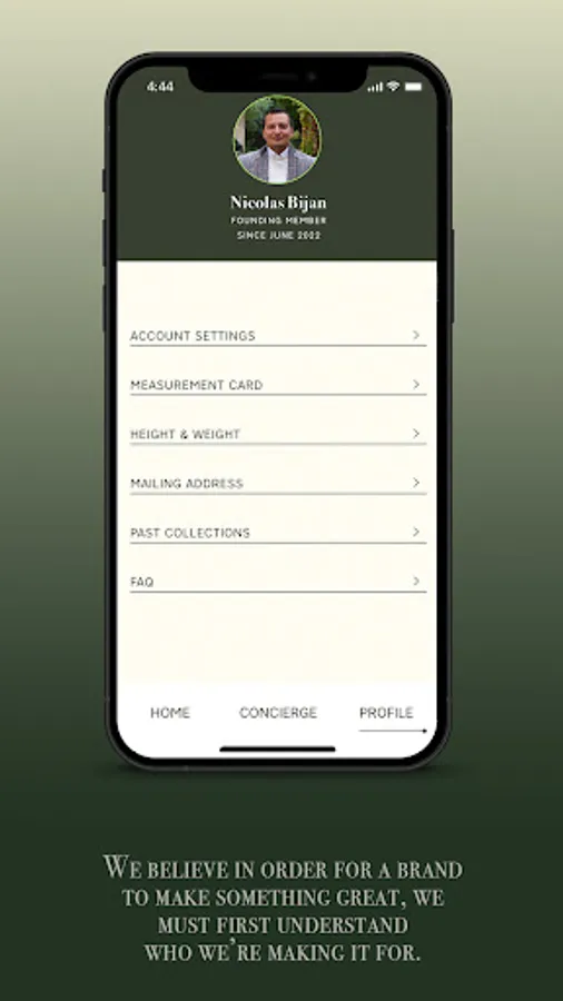 Built to serve a community of select members around the globe and accessible exclusively via the NB44 Mobile Application: Members receive the respect and level of service that luxury clientele truly deserve - all from the comfort and convenience of their mobile device. When a member is admitted to NB44 they will receive collections of NB44 merchandise delivered to their door. Members may purchase what they like and arrange for us to pick up what the do not find suitable.