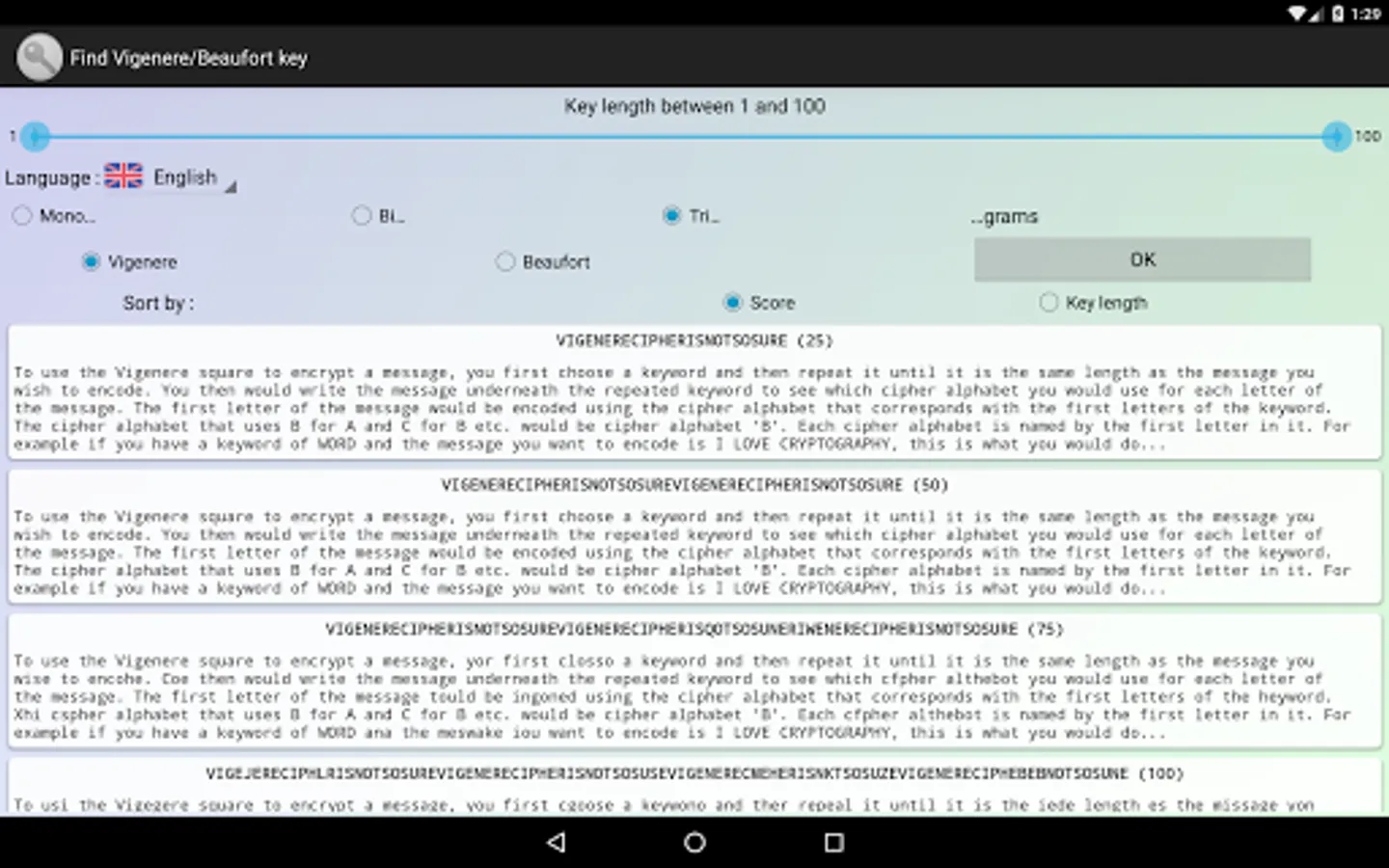 *** The N-grams for those breakers were downloaded from this very interesting site about cryptography : http://practicalcryptography.com/. Texts in english, french, german, spanish, italian and swedish are concerned.
