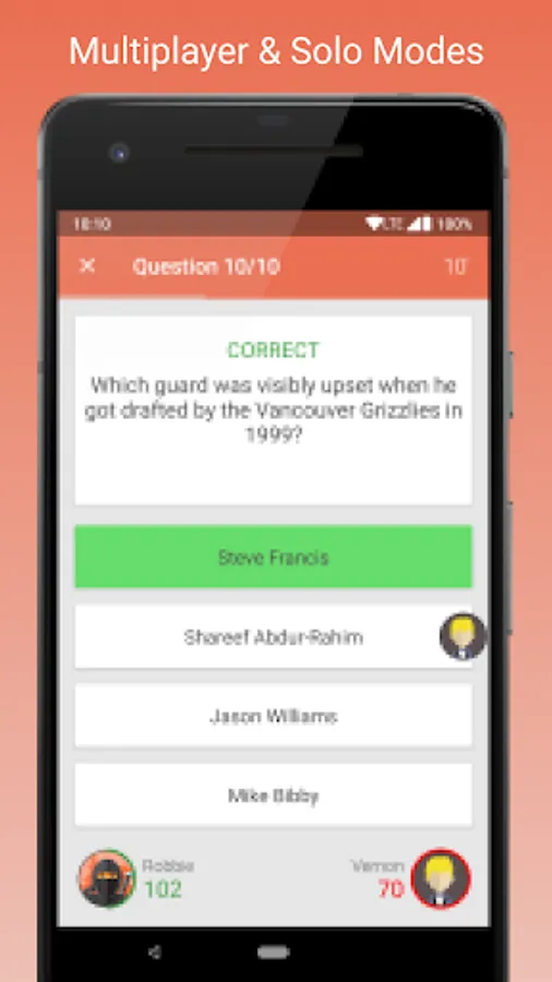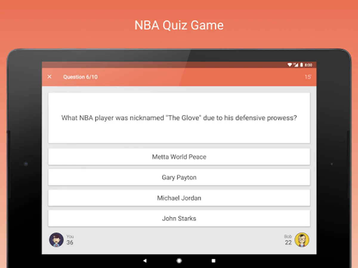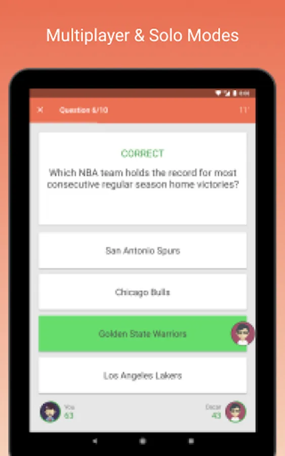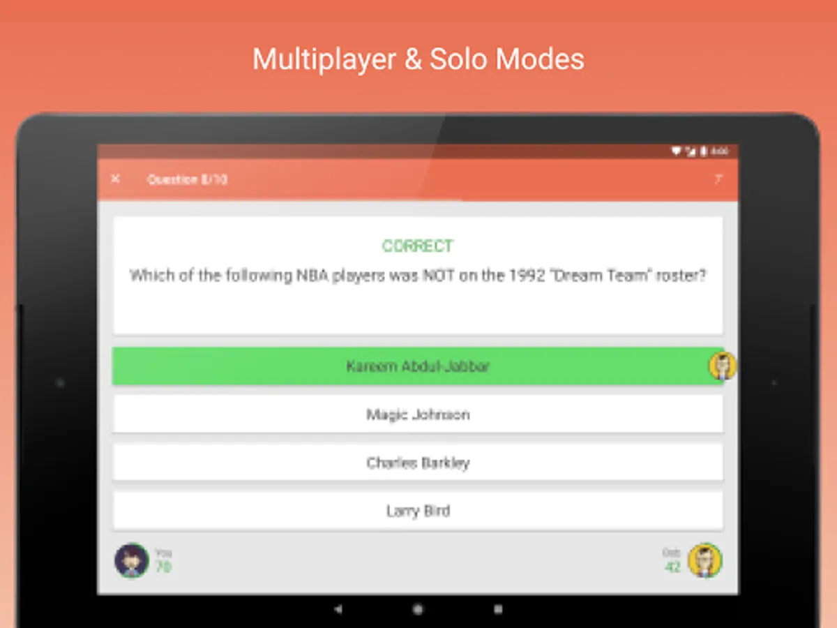 Fan Quiz for NBA is a trivia game for real basketball fans! Play a heads up or single player game and test your multiple choice answering skills. There are over a thousand questions for you to answer, with more added every day!