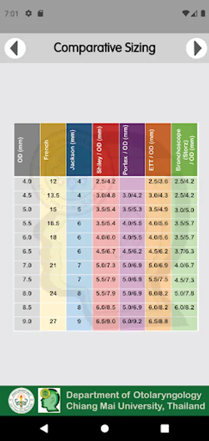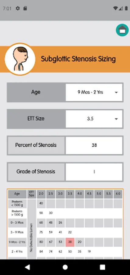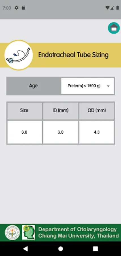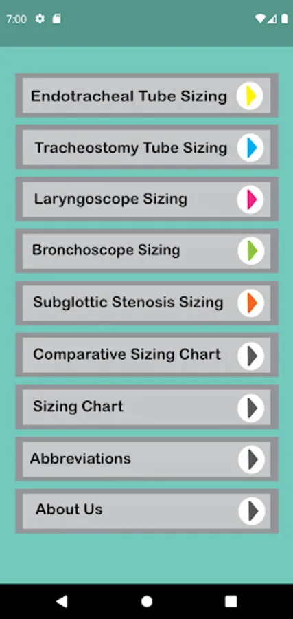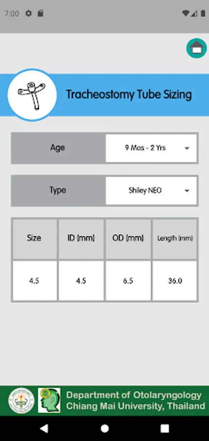 The app provides a single-source for instrument sizing for endotracheal tube, tracheostomy tube, laryngoscope, bronchoscope, and subglottic stenosis for pediatric patients.