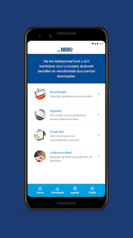In honor of its 25th anniversary, the NBBU has developed the MijnNBBU app especially for its members. In this app, if you are logged in, you can view and download the downloads, register for the courses and training sessions and discover the member benefits. In addition, you can change your details and, if you are the administrator of the organization, enter the checks.