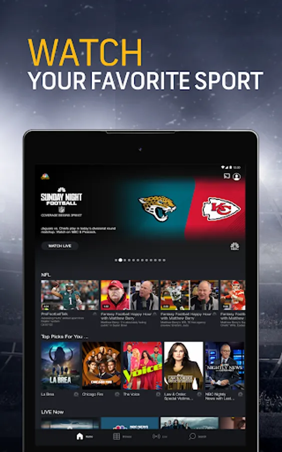 Watch LIVE sporting events on NBC, USA Network, Golf Channel, CNBC, Telemundo Deportes & more with the NBC Sports app!