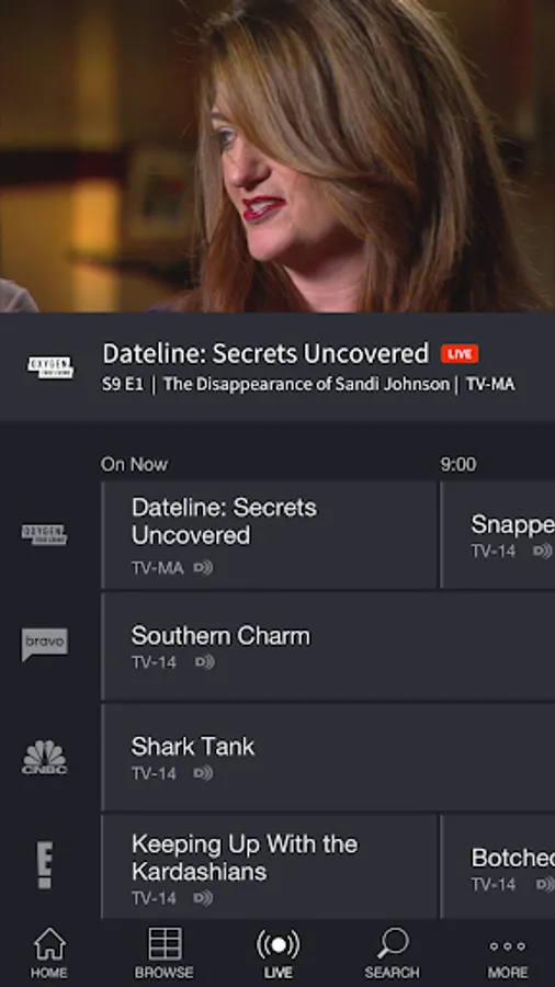 • Live stream and schedule available 24/7 when signed in with your TV provider.