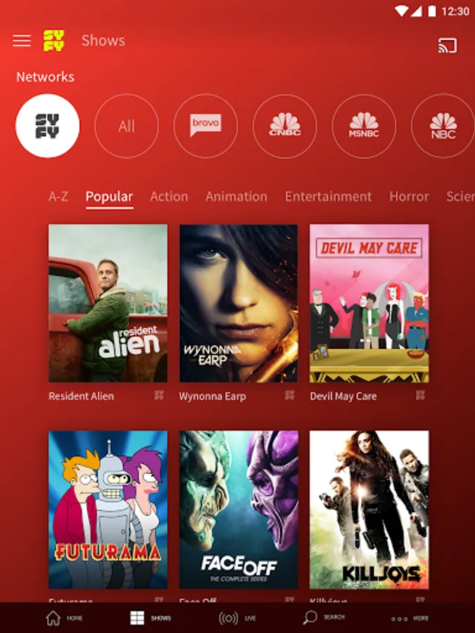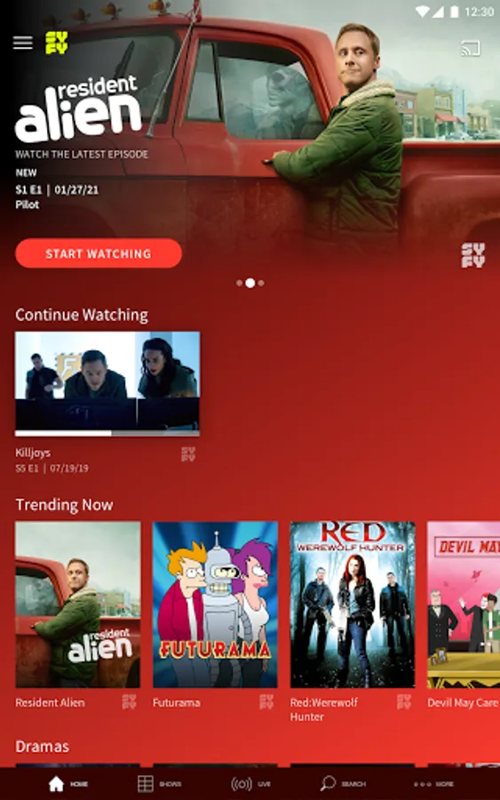 The SYFY app is the best place to catch up on the most recent season of your favorite shows, watch live TV, and stream movies and past season content!  Download the SYFY app now to watch full episodes of Resident Alien, Wynonna Earp, Van Helsing, Killjoys, Futurama, AND MANY MORE!