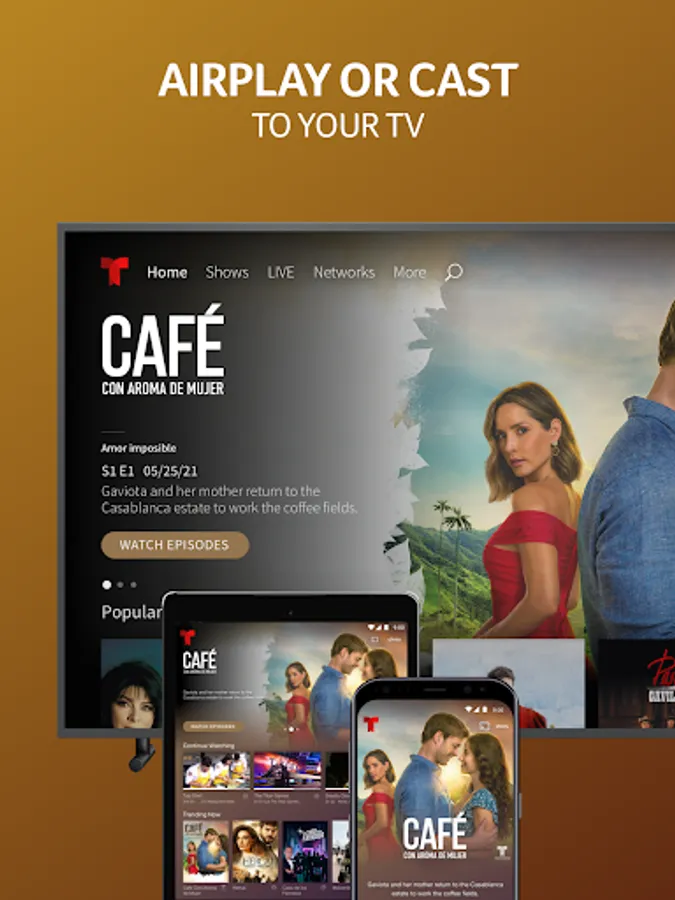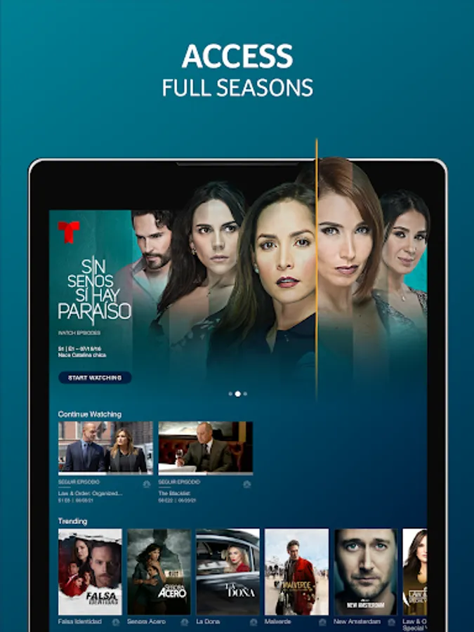 • Watch the latest episodes of new Telemundo shows the day after they air on TV.